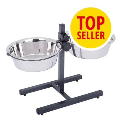 Stojan se dvěma nerezovými miskami, které jsou součástí balení, lze nastavit jeho výšku tak, aby byla vyhovovala i starším jedincům, případně psům ve vývoji. Lze využít na krmivo i vodu.