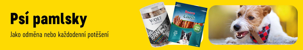 Psi milují žvýkací pamlsky, proto se těší na každou příležitost, kdy dostanou snack nebo pamlsek. Pamlsky jsou velmi důležitou pomůckou při výcviku psů, lze je podávat jako odměnu, pro péči o zuby nebo jen tak pro potěšení. Pamlsky dodají Vašemu psovi potřebné minerály a vitamíny, postarají se o dlouhou žvýkací zábavu a nízkokalorické pochoutky si může užít i pejsek s nadváhou. Máme pamlsek pro každého pejska, stačí si jen vybrat z široké nabídky na našem e-shopu!